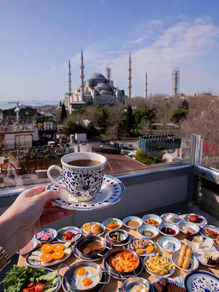 <p>Enjoy the spectacular panoramic views to the Bosphorus, Hagia Sophia Museum and Blue Mosque on every sunrise and sunset.</p>